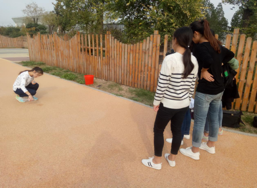 高科农业园内的海绵工程引发学生的关注。她们观察“海绵路”路面的渗水效果,通过与水泥路面、土质路面等的渗水对比实验,形成电视报道。