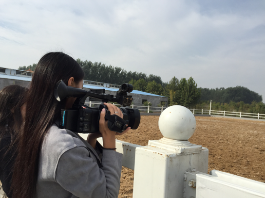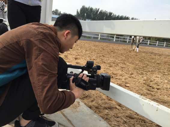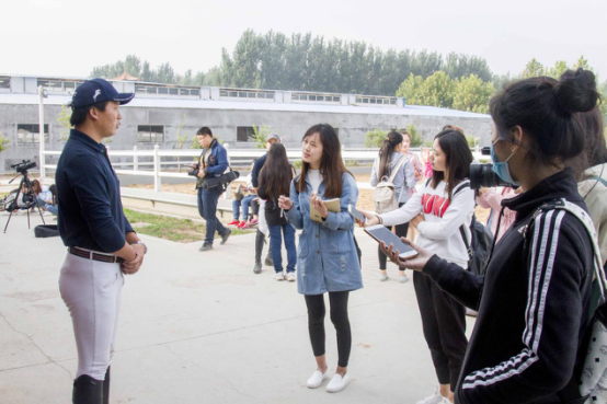 学生在马场展开采访活动。学生们还跟随教练清理马房,照顾马匹,进行了体验式采访。