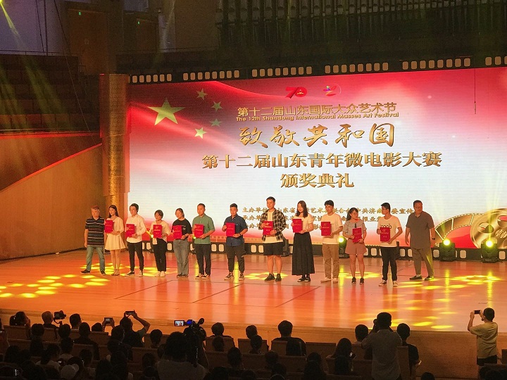 8月30日晚,由山东省文学艺术界联合会主办,山东省电影家协会承办的“致敬共和国——第十二届山东青年微电影大赛”颁奖典礼,在山东省会大剧院音乐厅隆重举行。山东女子学院文化传播学院荣获优秀组织奖,学院广播电视学专业学生原创并自导自演的故事片《人家可是男子汉哒》荣获故事片类三等奖,纪录片《乡村纪事 马套茶香》荣获纪录片类优秀奖。