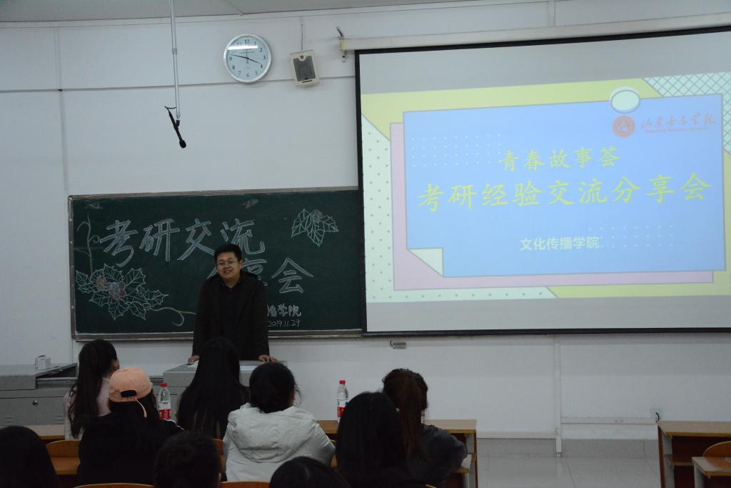为进一步提高文化传播学院学生的考研积极性和热情,助力即将参加硕士研究生入学考试的大四考研学子掌握相关考研答题的应试技巧,了解到更多的考研资讯,积极调整考研备考心态,做好考研规划,11月29日19:00,文化传播学院在博文楼101组织开展了“青春故事荟——考研经验分享交流会”活动。