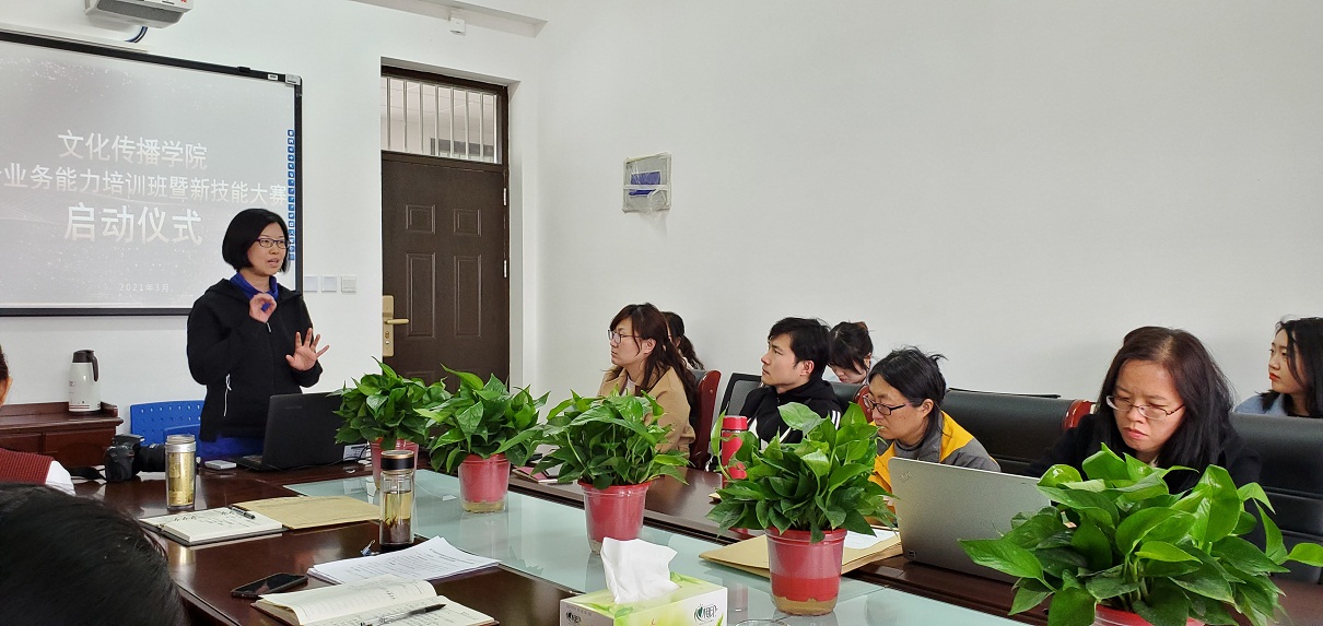 3月18日下午,文化传播学院“教师综合业务能力培训班暨新技能大赛启动仪式”在学院211会议室举行。会议由我院院长李百晓主持,全体教师参会。