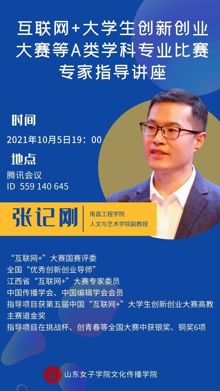 为做好学院学科竞赛工作,10月5日,学院邀请南昌工程学院人文与艺术学院副教授, “互联网+”大赛国赛评委张记刚围绕互联网+大学生创新创业大赛作专题讲座。讲座通过腾讯会议线上举行,文化传播学院(传媒学院(筹))院长李百晓主持讲座,学院全体教师聆听了专题辅导讲座。