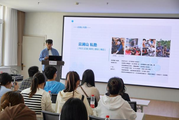 午饭歇息后,王兴伟老师与大家进行了交流讨论,收集同学们对于短视频、乡村振兴等方面的困惑并解答,还对同学们的短视频账号存在的问题进行逐一分析。此外,王老师还向同学们讲述了短视频拍摄时设备的使用、运镜技巧等“干货”,并邀请同学们上台演示,互动感满满。在随后的《短视频策划及实操》讲座中,王老师从短视频做什么内容、发展方向、拍摄形式、未来发展趋势等方面,更加细致地教授同学们如何拍好、剪好、策划好短视频及账号运营,既打开了眼界,又拓宽了同学们的思路。