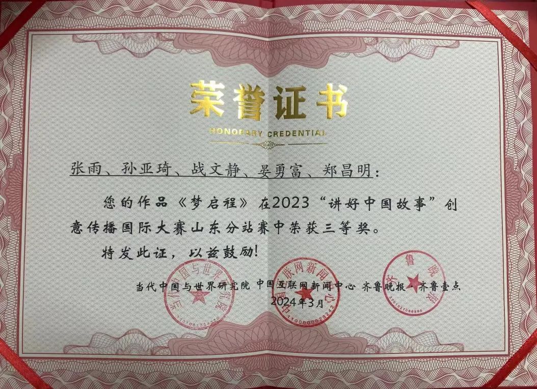 3月26日,2023“讲好中国故事”创意传播国际大赛全国定评会议暨山东分站赛颁奖典礼成功举办。《黄河的温度》等3件作品分别获得山东分站赛二、三等奖。山东女子学院获评优秀组织单位。