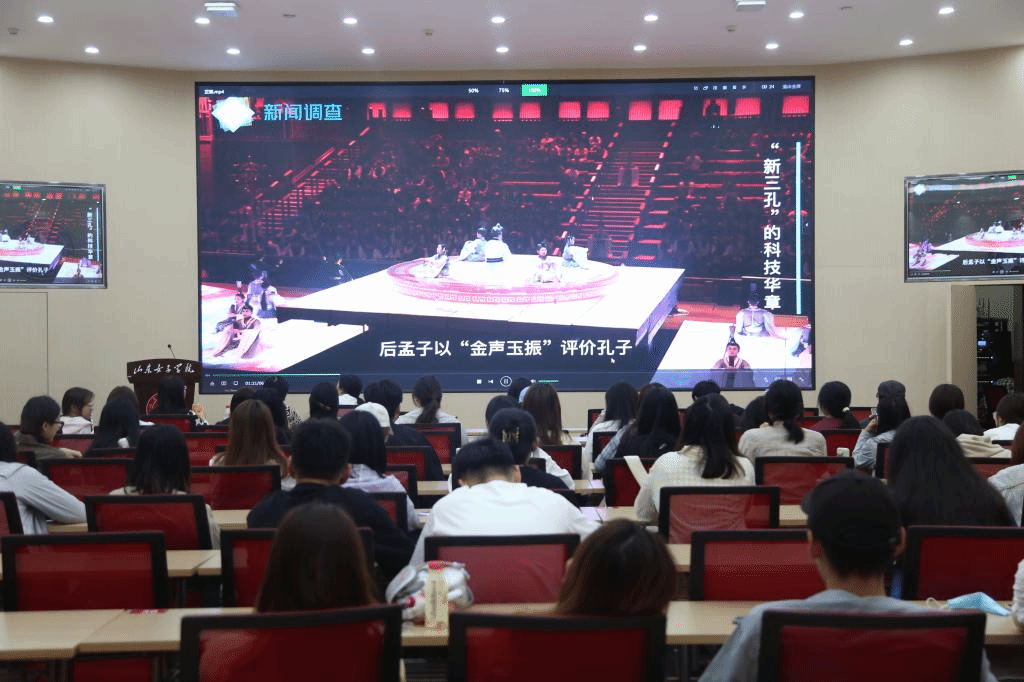 4月,2021级广播电视学、2022级新闻采编与制作(校企合作)两个班级,随《新闻调查》课程赴曲阜市中华优秀传统文化研学基地调研学习。本次课程历时一周,深入探究传统文化的内涵与当代价值,呈现出许多既有深度又有温度的新闻调查作品。展映是课程最后的结课环节,既是同台竞技,也是不同班级之间互相交流学习,分享经验的重要环节。