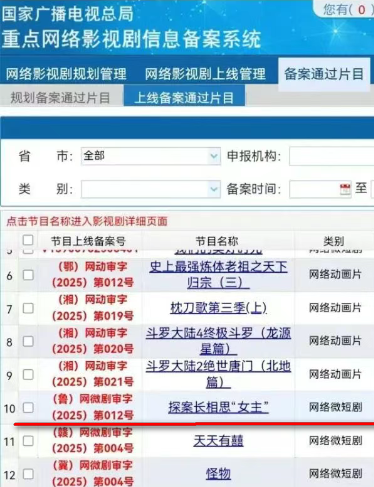 网络剧《探案长相思“女主”》获批网络剧片发行许可证