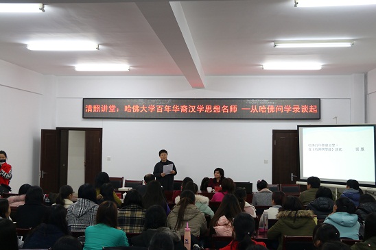 11月21日下午,北美华文著名作家、哈佛中国文化工作坊主持人张凤女士应邀在办公楼第四会议室举办了“哈佛大学百年华裔汉学思想名师:从《哈佛问学录》谈起”专题讲座。该讲座是本年度清照讲堂的系列讲座之一。相关专业老师和文化传播学院部分学生聆听了本次精彩的讲座。