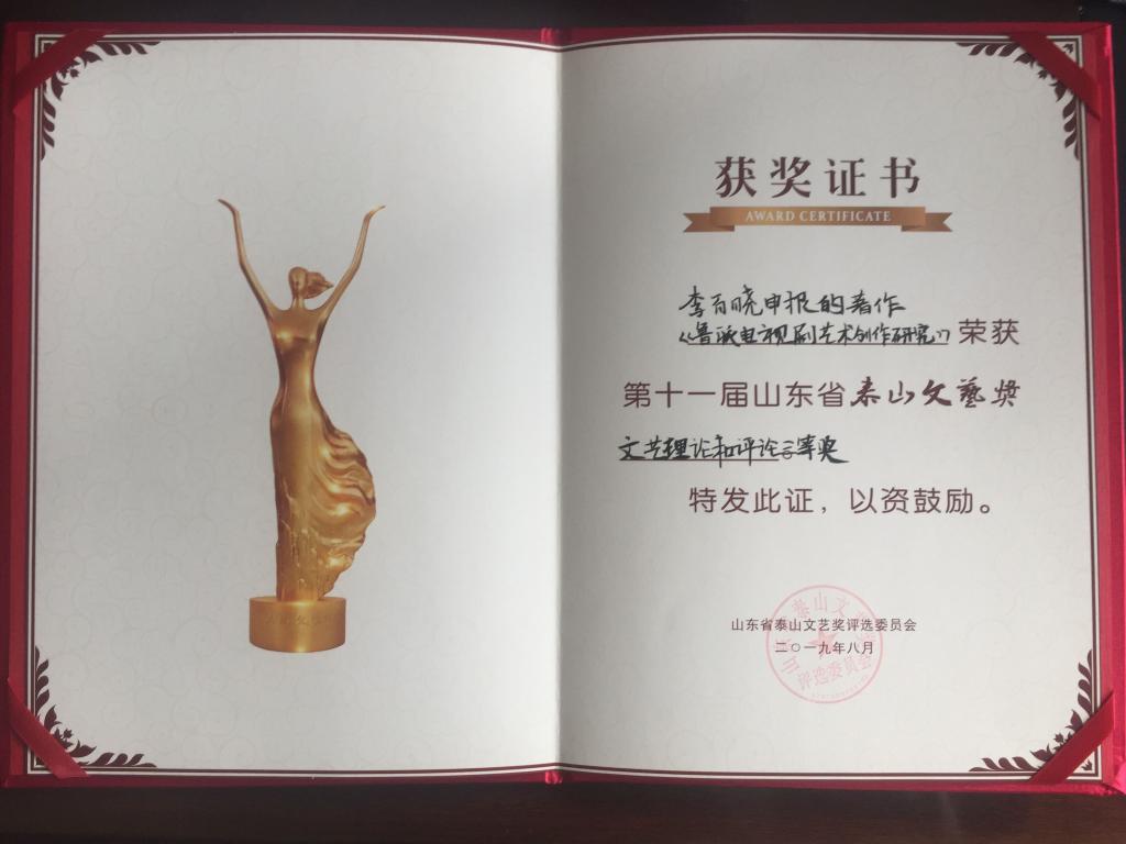 在2019年第十一届山东省“泰山文艺奖”评选中,我院李百晓副院长的著作《鲁派电视剧艺术创作研究》荣获文艺理论和评论三等奖。