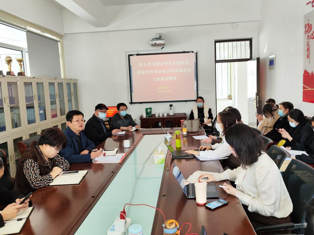 3月9日下午,传媒学院在求真楼211会议室召开全体教师职工会议,专题学习研讨李光红校长在国家社科基金项目辅导报告会上的讲话精神,并结合学院本学期工作实际开展交流研讨。会议由院长李百晓主持。