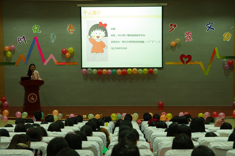 首先山东省优秀学生,山东女子学院广播台台长,校园十佳学生“优秀团干部”2015学年国家奖学金获得者,五名学长学姐们分享与交流他们的学习和生活的经验,使新生们能更好的融入大学生活,像优秀榜样学习。