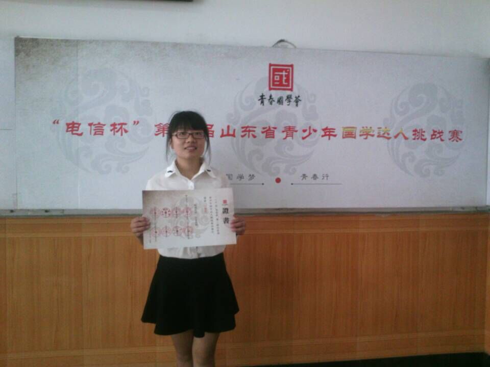 9月24日,山东女子学院选手王书琦在第二届山东省青少年“国学 达人”挑战赛决赛中获得三等奖,本次比赛由共青团山东省委、中共山东省委宣传部、中共山东省委高校工委、山东省教育厅、山东省文化厅、中国孔子基金会、山东省学生联合会、山东省少先队工作委员会共同主办,曲阜师范大学承办,省内有54所高校派出选手参与本次比赛。