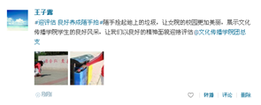 此次#迎评估良好养成随手拍#微博大赛活动,展现了文化传播学院学生的良好精神面貌,丰富了大学生的课余生活,为迎接评估贡献一份力量。
