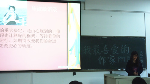 本次比赛分为预赛和决赛两个阶段,预赛阶段共收集到64份PPT作品,经过预赛筛选共保留20份作品参加决赛,决赛的形式为选手根据自己的PPT进行现场讲解,评委根据PPT的制作和选手个人的演示讲解水平进行打分进行评比。在演示过程中,选手们根据自己所做PPT的风格,对于自己最喜爱的作家进行了展示,背景音乐的选择为气氛的营造增色不少,显示了同学们对于PPT软件使用的熟练以及各自的讲解水平。本次“我最喜爱的作家”PPT展示中涉及到的作家包括梁漱溟、张爱玲、毕淑敏这样的文坛巨匠,也有郭敬明、刘同、张嘉佳等青年作家,让同学们拓宽了自己的阅读视野,引导大家多读书、读好书,提高大家对于阅读的兴趣,在“世界读书日”到来之际,引起大家更多的关注。最终2013级新闻与制作专业班的王爽同学荣获一等奖,2013级文化产业管理专业班的王子露、2014级新闻采编与制作张文倩等同学获得不同奖项。