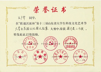 文化传播学院学生在第十三届山东省大学生科技文化艺术节民俗文化图文征集比赛中荣获佳绩