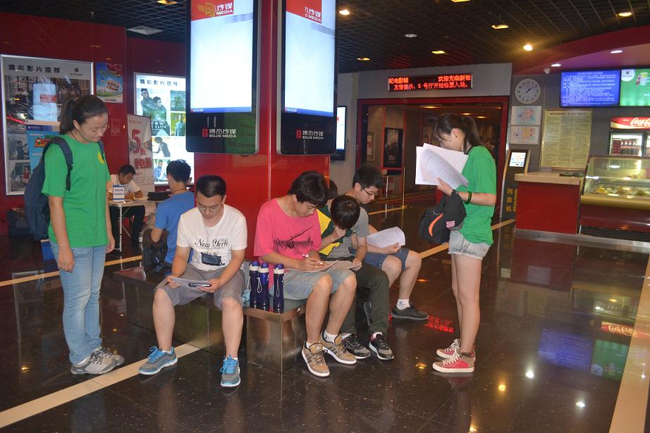 7月14日至7月19日,两名社会实践团队的指导老师及6名调查团的成员首先到了济南新世纪电影城万达店,成员就新世纪影城电影票房的相关数据采访了影城的李经理,并针对前来影院观看电影的消费人群为目标受众随机地向他们发放了调查问卷。随后成员们又分别到了济南百丽宫影城、新世纪电影城洪楼店、鲁信影城等影院进行了社会调查活动。