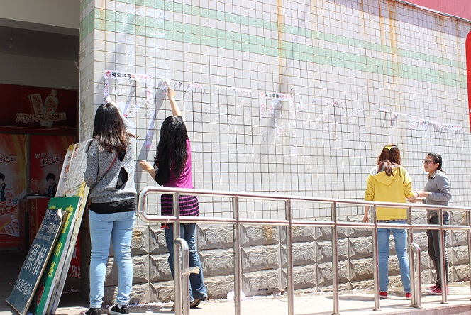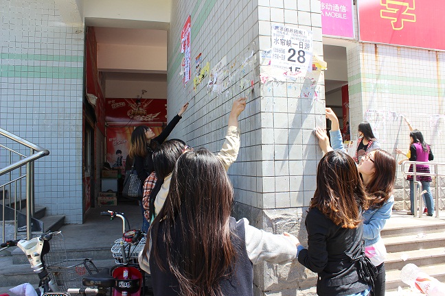 为美化校园环境,规范校园宣传内容,培养与宣传广大同学自觉维护校园环境卫生的意识,按照学校团委、宣传部、后勤处的要求,2013年4月25日下午,文化传播学院团总支开展了清除校园小广告活动,集中对学校超市西墙私自张贴的小广告和过期宣传海报进行清整。