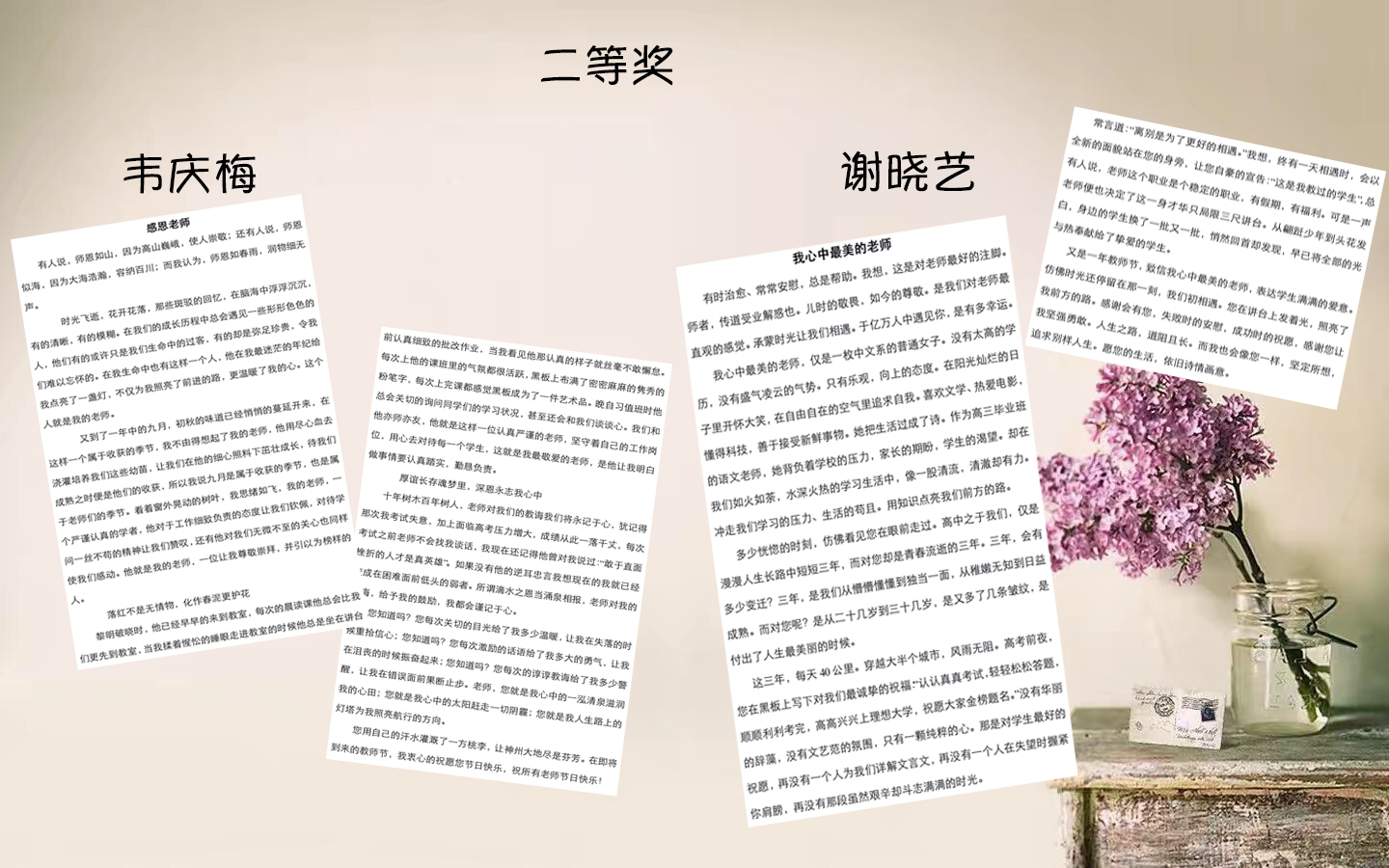 活动一经推出,得到很多同学的积极响应,同学们纷纷以文字的形式来抒发对老师的最真的感情。参赛者围绕最美老师这一主题,用手中的笔书写与老师之间的最美情感,致以最诚挚的感谢,同时学院也借此次活动丰富了同学们的精神生活,让同学们明白“饮其流者怀其源,学其成时念吾师”的真谛,让师生情插上文字的翅膀。