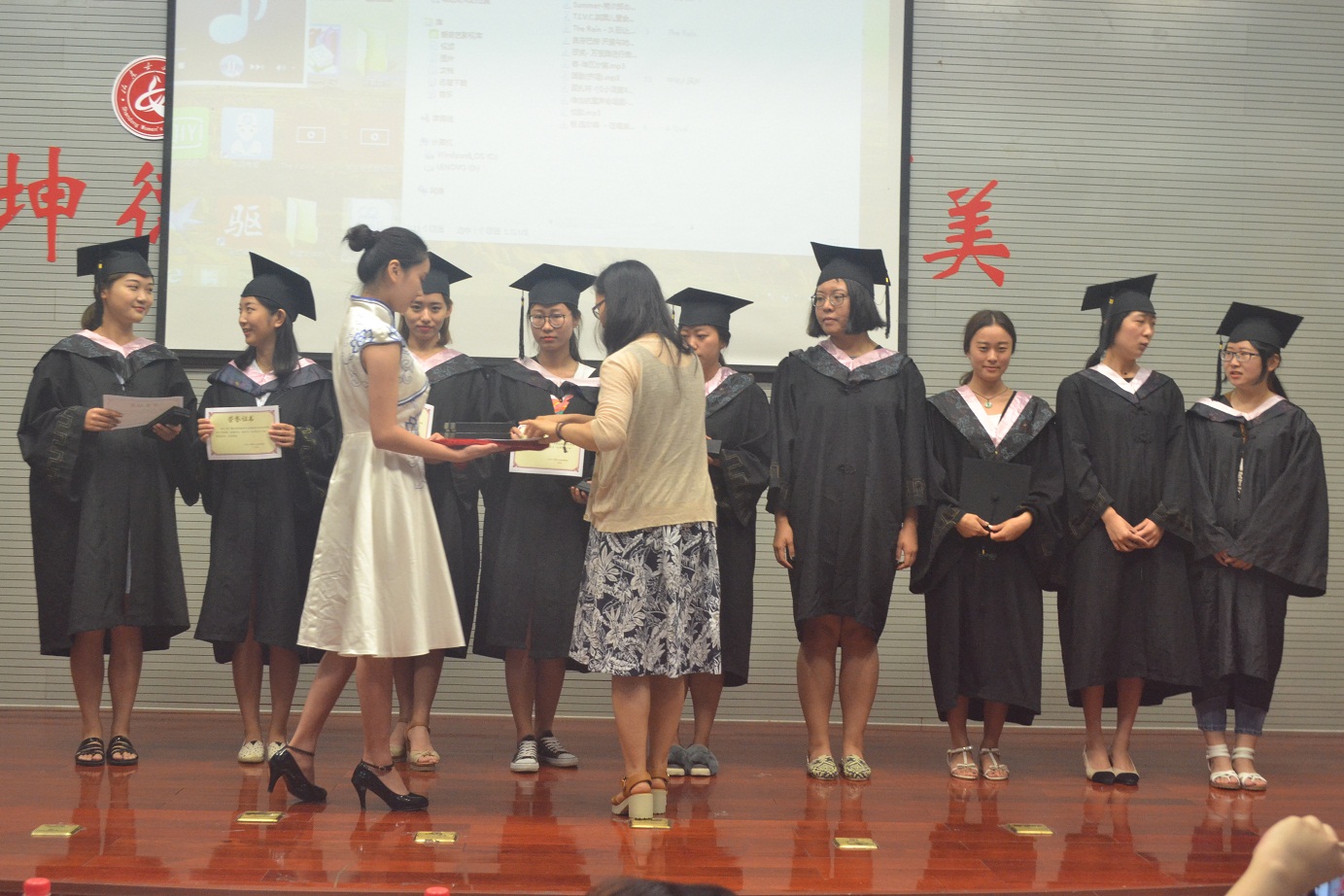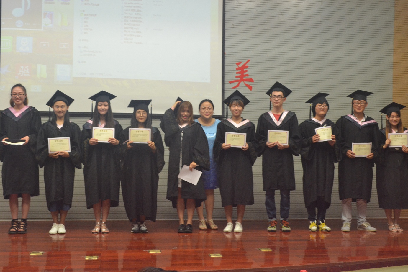 典礼在文化传播学院影视工作室特意为毕业生制作的视频“永远与你同行”的播放中落下帷幕。视频中记录了毕业生几度春夏秋冬的校园身影和全体教师的深情寄语:母校与老师一直会牵念你们,常回来看看。