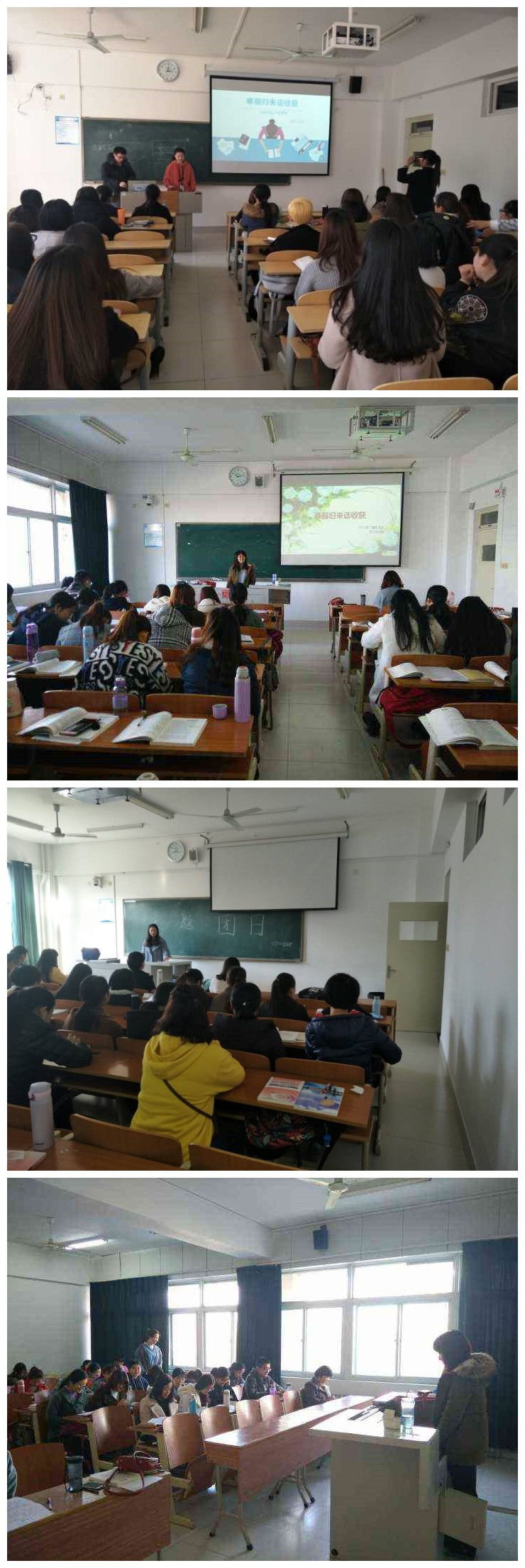2015级新闻采编与制作2班的同学在团支书的带动下,畅所欲言,把自己在寒假的实践经历分享给大家;2016级广播电视学2班的同学们则着重分享了自己在寒假的学习情况,并指出在下学期学习上应努力的方向;2016级文化产业管理2班的同学分享了自己打工的经历,表达了自己对现在幸福生活的无比珍惜。