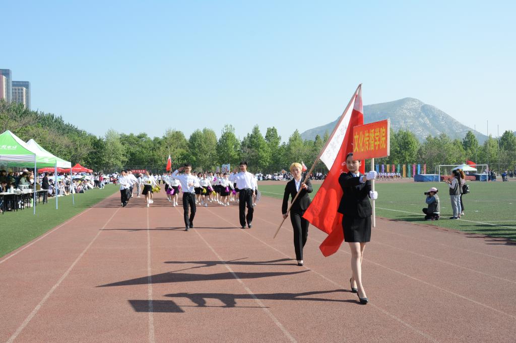 4月27日,山东女子学院春季运动会于田径场拉开帷幕。各二级学院在开幕式上的方队表演获得极高赞誉。其中文化传播学院代表方队,喊着“放马金鞍,唯我文传”的响亮口号,迈着慷锵有力的步伐通过了主席台。展现了文传学子积极向上,拼搏不懈的良好精神风貌。在之后的健美操、足球操、太极棍的表演中,文传学子也有优秀表现。