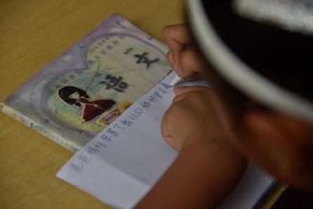 孩子认真写下心愿。 董悦 摄