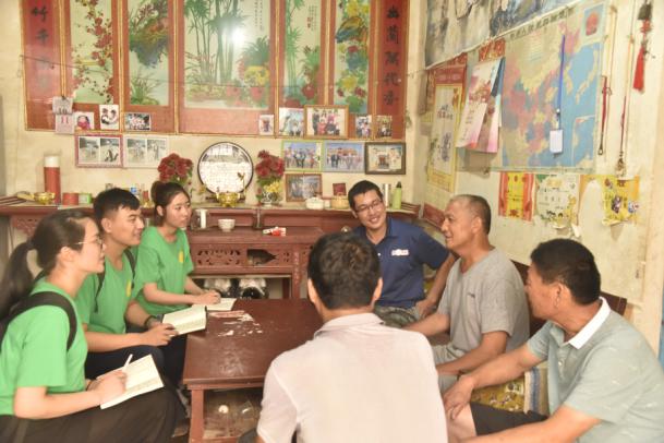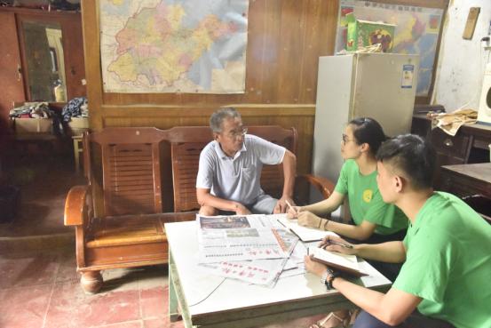 在第一书记刘军和保宁村村委代表的引导下,志愿者服务队的同学相继走访了当地几家老党员的家中,与老党员同志们进行了面对面的交流访谈。