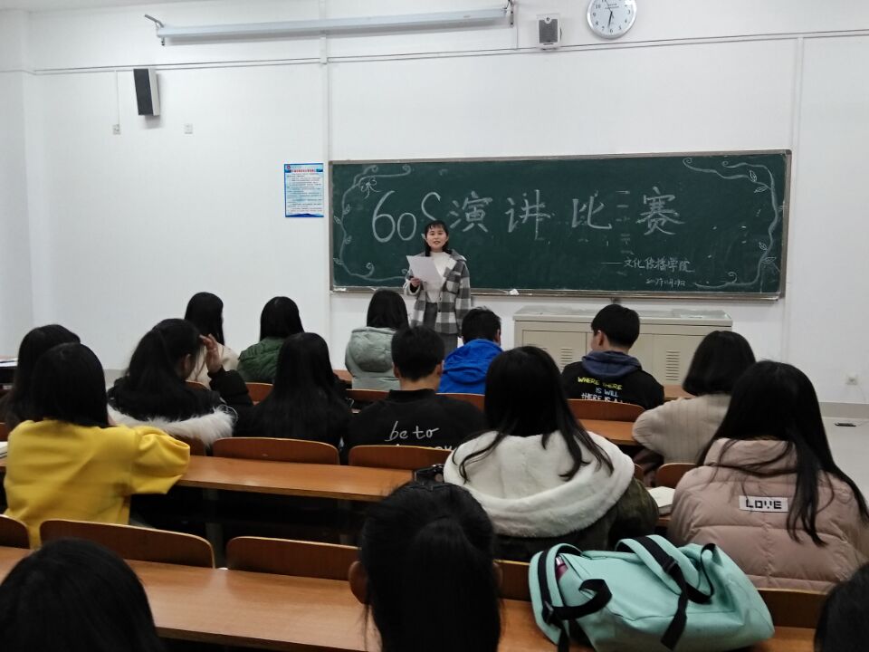 为了进一步提升学生的演讲能力及表达能力,在日后面试中凸现自我,在日常学习及工作中更好的提升人际沟通。11月29日晚,文化传播学院学生会于博文楼307举办了“60秒演讲”活动。