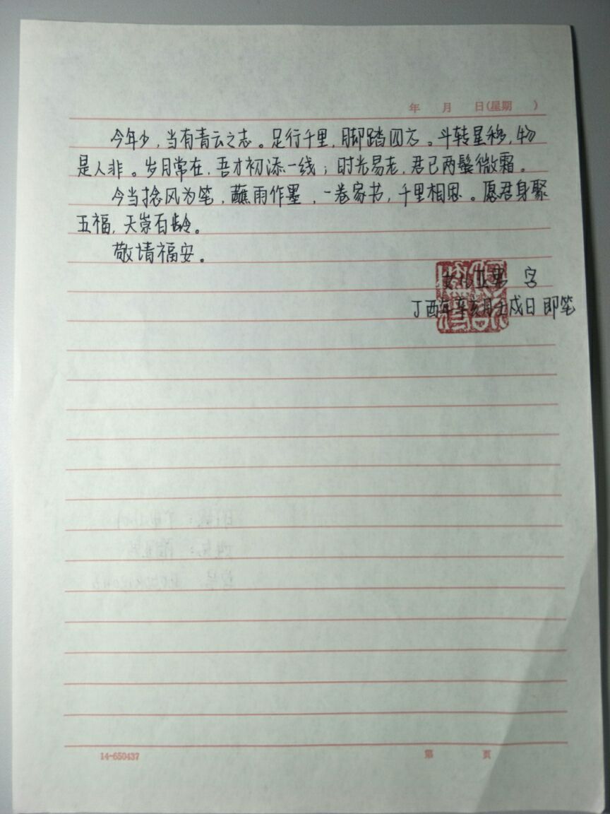 同学们将浓情传至笔尖,分享属于她们的柔情思念。2016级文化产业管理2班的李云霞同学用简单的话语传达出真挚的爱,感人而又亲切;2016级广播电视学1班的蔺亚男同学以文言文句式书写,读来朗朗上口,格外有趣……一封家书的意义象征着一份珍贵的情感。家书,是思想与感情的沉淀,是从生活中采撷下来的文字,见证了与家人有朋友在诸多时光下的共同成长。
