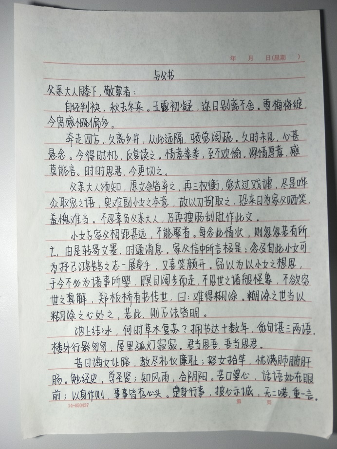 家书作为传递亲情最好的载体之一,有着任何沟通方式所不可替代的魅力,牢固地保持着、维系着家庭关系的和谐,支持着人们在学习、工作和生活中不断拼搏和奋斗。文化传播学院开展了“一纸家书”书信展示活动,共收到50余份作品,经过评选12月4日公布了获奖情况。