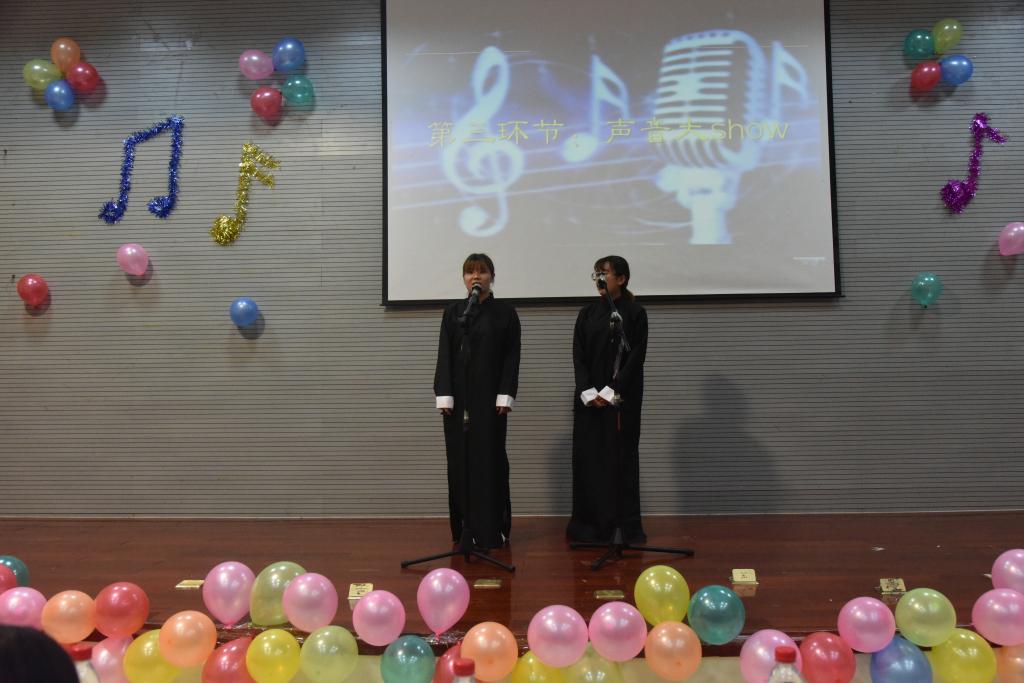 本场比赛共分为“经典之声”、“魔力之声”、“声音大show”三个环节。伴随着主持人热情洋溢的开场献词,比赛在观众的欢呼声和掌声中拉开了序幕。第一环节的“经典之声”中外国语学院带来的《甄嬛传》、《狐妖小红娘》以及《蜡笔小新》的经典片段配音,通过声音的转换以及逼真还原原生展现出了语言的魅力,用美妙多变的声音征服了在座的评委与观众。第二环节“魔力之声”中艺术学院带来的《爱情公寓》的片段配音,通过粤语与特色方言的巧妙配合将比赛推向了高潮。第三环节的“声音大show”各学院尽展风采,其中文化传播学院带来的相声《换个打开方式》幽默搞笑的相声表演使得现场气氛活跃了起来,经济学院带来的歌伴舞《小跳蛙》充满活力,让大家领略参赛选手的风采。