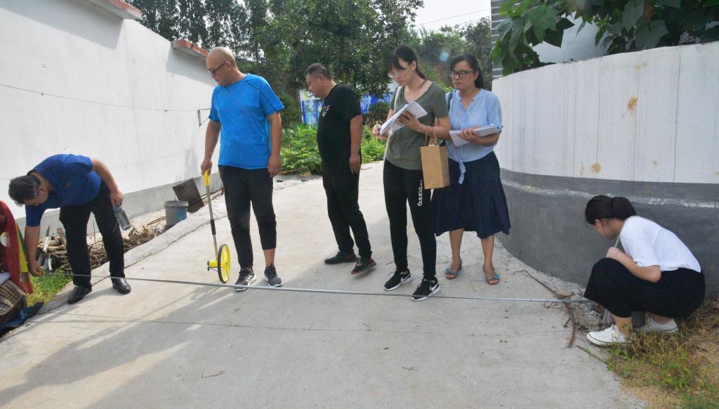 团队成员跟随村镇办工作人员进行街巷硬化竣工验收