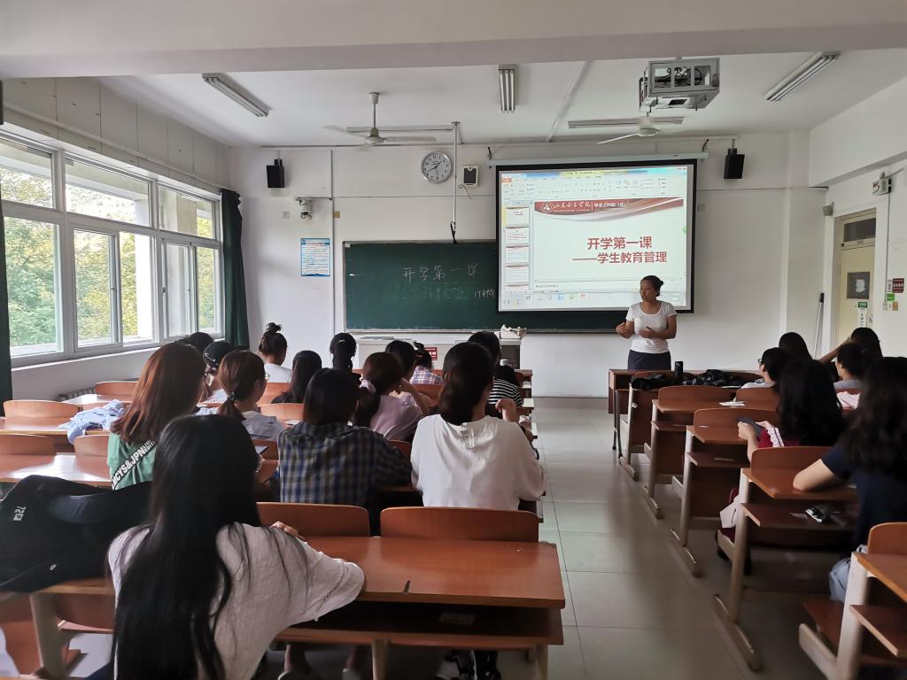 新学期伊始,为贯彻落实《山东女子学院2020年秋季学期开学工作实施方案》,将疫情防控工作做实做细,切实保障学生安全健康,文化传播学院分别于9月7日至9日组织全体文化传播学院在校生开展3场“开学第一课”主题活动,观看《山东女子学院开学演练教学视频》,学习最新防疫要求。