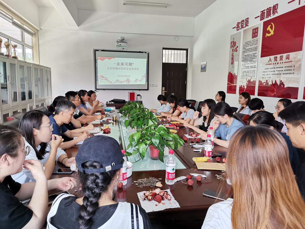 6月24日,山东女子学院文化传播学院在求真楼211会议室召开毕业生座谈会。学院党总支书记成曙霞、院长李百晓、副书记叶小华、院长助理郭静出席会议,毕业生辅导员及部分毕业生代表参加了会议。