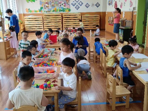 户外活动结束后,小朋友们回到教室,有序地坐到餐桌前,等待团队成员分发课间小点心。“谢谢老师,您辛苦啦!”,老师在清理桌面时,孩子们表达着自己的感谢。最后,团队成员与小朋友们一起进行了建构游戏。活跃的游戏氛围充分调动了孩子们的兴趣,小朋友们表演了自己新学的歌曲和舞蹈,团队成员则为他们拍摄照片和视频,记录下美好的童年时光。面对镜头,小朋友们都展现出了孩童时代独有的热情与纯真;团队离开时,小朋友们向镜头挥手告别,恋恋不舍。