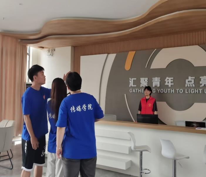 “木兰之花VI”社会实践团队于7月3日赴园博园社区就宣传片拍摄具体思路以及拍摄安排与工作人员进行交流,并开展社区服务中心的拍摄工作。