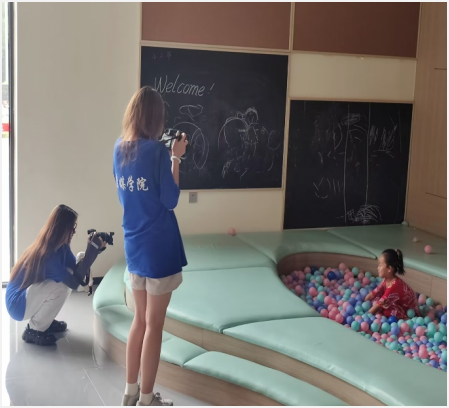 随后,团队成员在社区负责人的带领下对社区活动中心的青年会客厅、志愿者服务中心、清锋驿站、儿童活动中心等地进行了拍摄,在拍摄的过程中同学们也切实感受社区浓厚的人文关怀气息与细致入微的便民式服务。琴房、书画室、舞蹈室以及乒乓球运动场地等场地充分考虑居民需求,为居民尤其是孩子们提供了课后娱乐场地,也为外出工作的年轻父母减轻一份生活压力。团队成员与现场的社区居民就社区“年轻化”为重点的社区品牌建设和具现化的民本思想进行了交流。