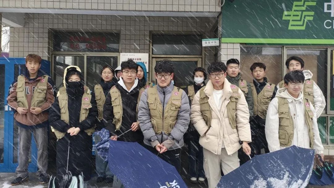 3月2日,学校迎来返校高峰,恰逢暴雪突袭校园。传媒学院学生会迅速响应,共组织20名志愿者,分别在学校西门与宿舍楼前设立服务点,以“绿马甲”筑起温暖防线,有效应对开学暴雪天气带来的行李运输难题。