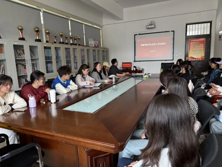 为进一步提升传媒学院融媒体中心学生宣传队伍的专业素养和工作能力,构建高质量学院宣传工作体系,4月9日中午传媒学院在求真楼211会议室召开学生宣传工作培训会。传媒学院党委书记李霞、副书记郑全蕾出席培训会,刘欢老师及传媒学院融媒体中心全体学生参加会议。