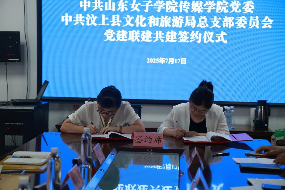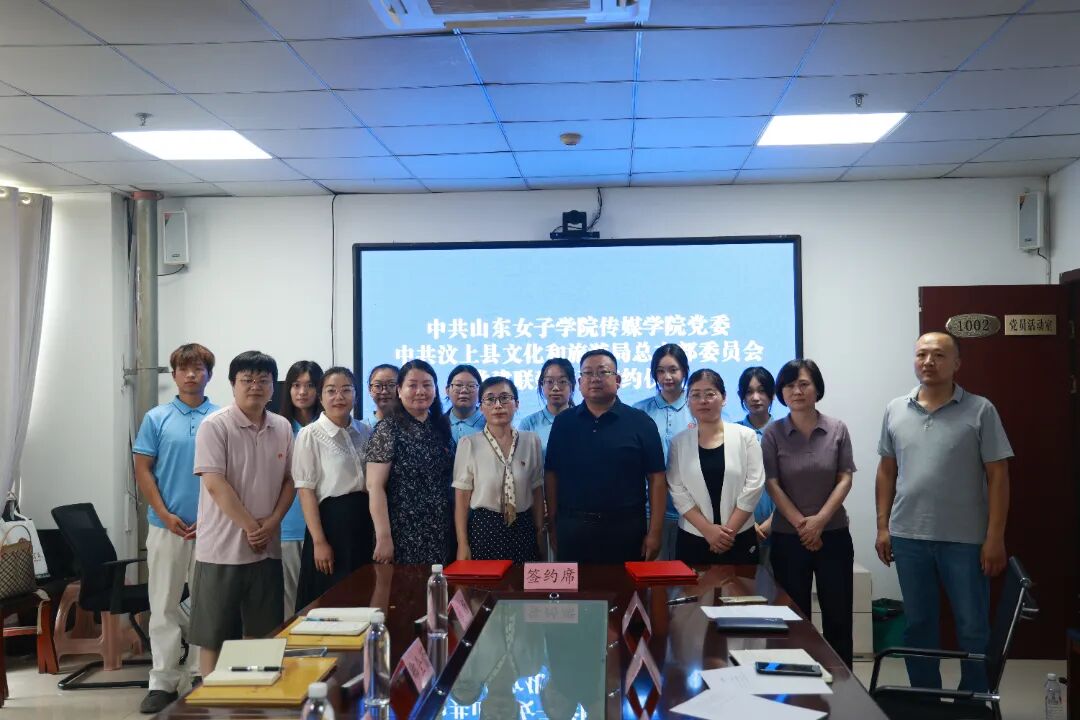 上午9时30分,在汶上县创业大厦,山东女子学院传媒学院党委与汶上县文化和旅游局党总支签订党建共建联建协议,将本着资源共享、发展共促的原则,在人才培养、文化传播、志愿服务等领域展开合作,共同探索“高校+地方”传统文化创新传播模式。签约仪式后,实践团成员充分发挥传媒专业优势,为当地社区居民、图书馆开设“非遗里的儒学”公益课堂,通过剪纸、漆扇、AI动画故事等手工体验、传统文化故事将儒家思想融入互动教学,让传统文化在童趣实践中生根发芽。