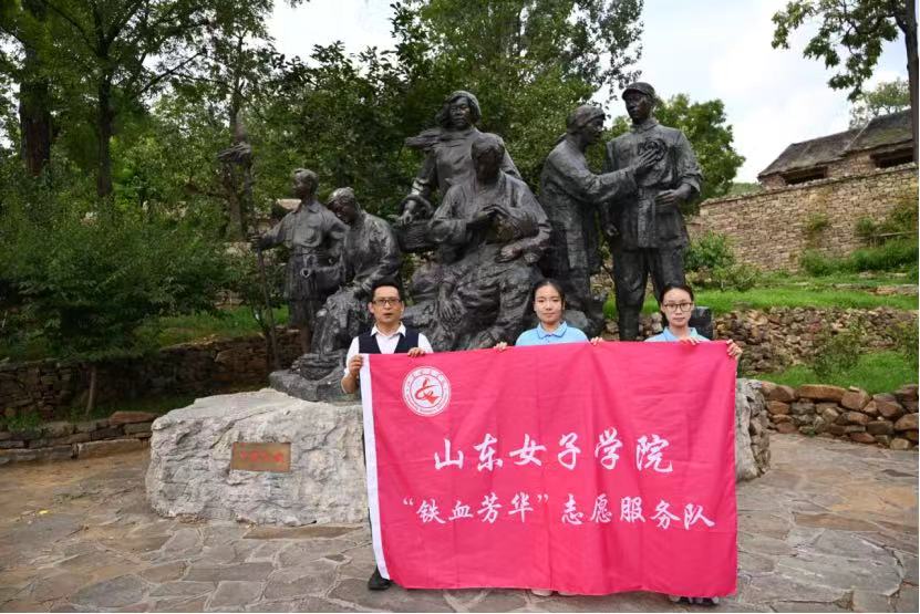 7月17日下午,山东女子学院传媒学院“铁血芳华志愿服务队”的成员们,怀着崇敬的心情,抵达位于临沂市沂南县的沂蒙红嫂纪念馆,开展暑期“三下乡”社会实践活动,进行红色文化研学与志愿服务。