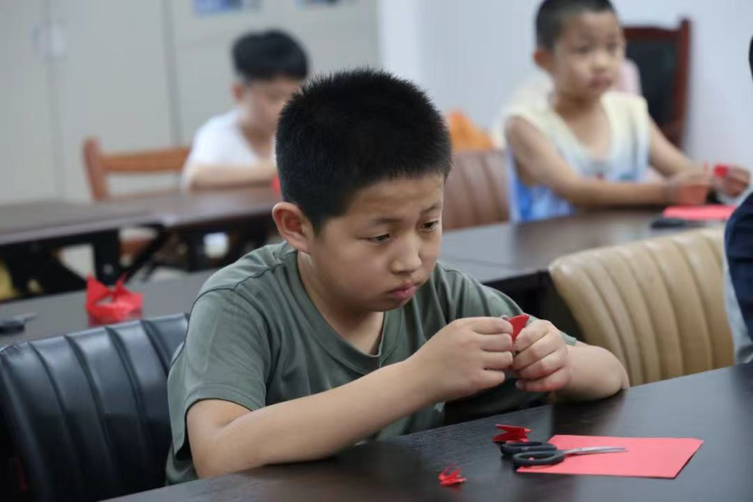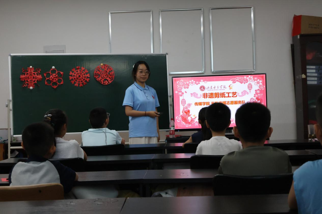 7月18日,山东女子学院传媒学院光影传媒志愿服务队通过非遗剪纸课堂、道德模范故事宣讲,让社区儿童与团队成员在传统文化的滋养中成长,增强文化传承意识。