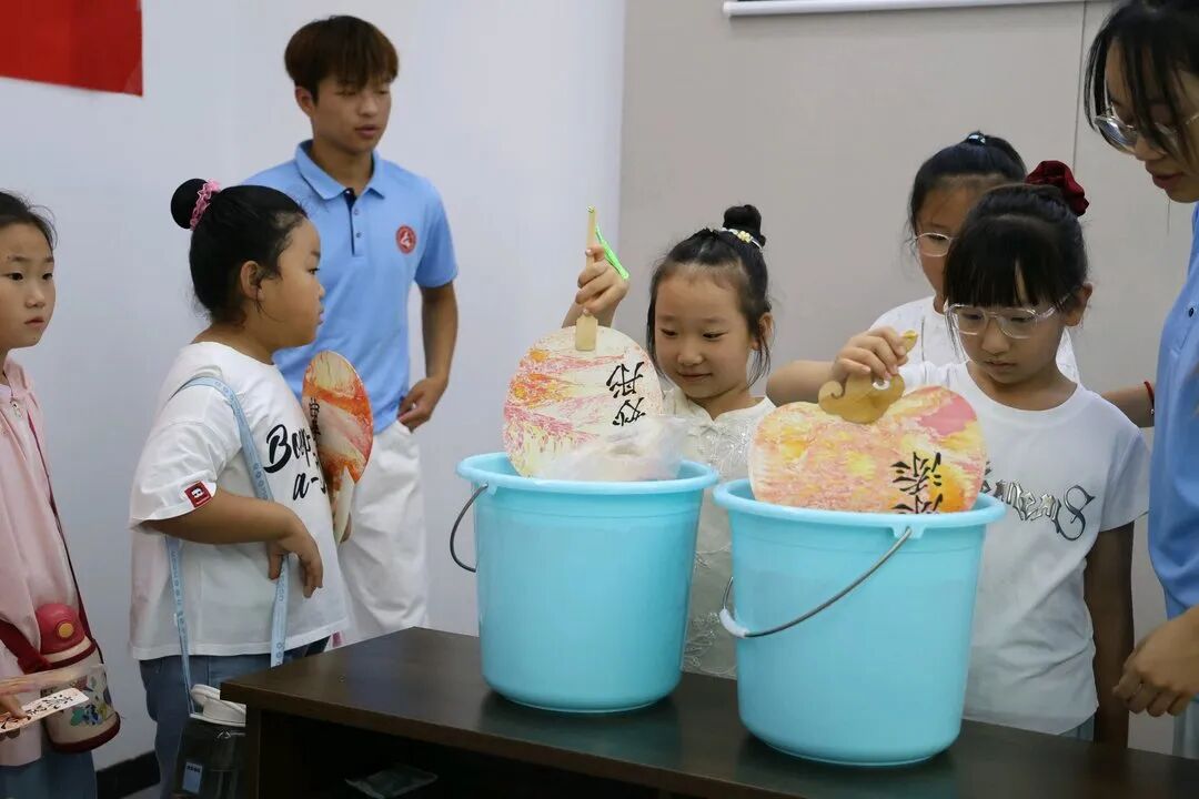 为了让沉睡的文化遗产“活”起来,青年团队聚焦社区,设计面向儿童的非遗体验工坊。在剪纸活动室,志愿者手把手教孩子,从对称剪法到镂空技巧,红纸变成窗花和小动物,知识讲解与实践结合,让“非遗”概念可触可感。漆扇制作中,孩子们系上围裙,从扇骨处理到漆料描绘,在志愿者指导下,承载曲阜地域文化的漆扇初现雏形。