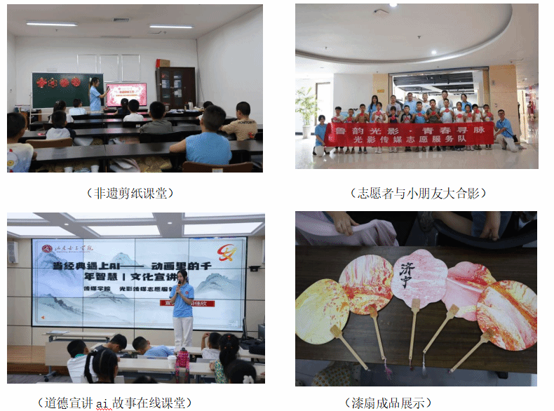 签约仪式后,实践团迅速将“书面上的合作”转化为“行动里的实效”。他们在坝口社区和图书馆开设 “非遗里的儒学”公益课堂:在剪纸区域,孩子们巧手翻飞,《论语》经典场景“跃然纸上”;漆扇制作区,传统漆艺与儒学语录相结合;在AI动画区,,孩子们亲手制作动画短片,古老传说借数字技术“重生”,使传统文化以更潮、更酷的方式传播。“原来传统文化可以这么有趣!”参与活动的社区居民感慨。这些活动让儒家思想从“书本理论”变为“可触可感的体验”,在百姓心中播下传承的种子。
