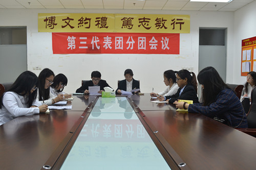 4月20日晚7:30,山东女子学院第二次学生代表大会第三代表团第一次分团会议在图书馆B座208成功举行。学生会主席杨晓敏和副主席刘志昊主持会议,8名学生代表到场参加会议,主要就山东女子学院第二次学生代表大会相关事宜做出了详细介绍和相关安排。