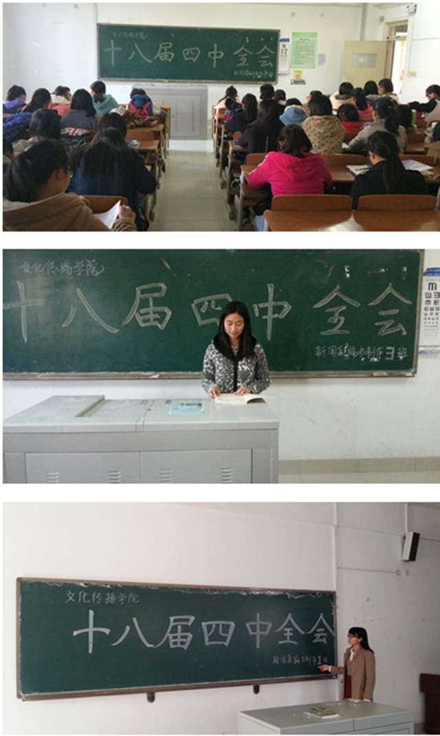 11月6日,山东女子学院文化传播学院团总支成功开展学习党的十八届四中全会精神主题团日活动,文化传播学院各团支部广泛参与,开展了类型丰富、富有实效的主题团日活动。