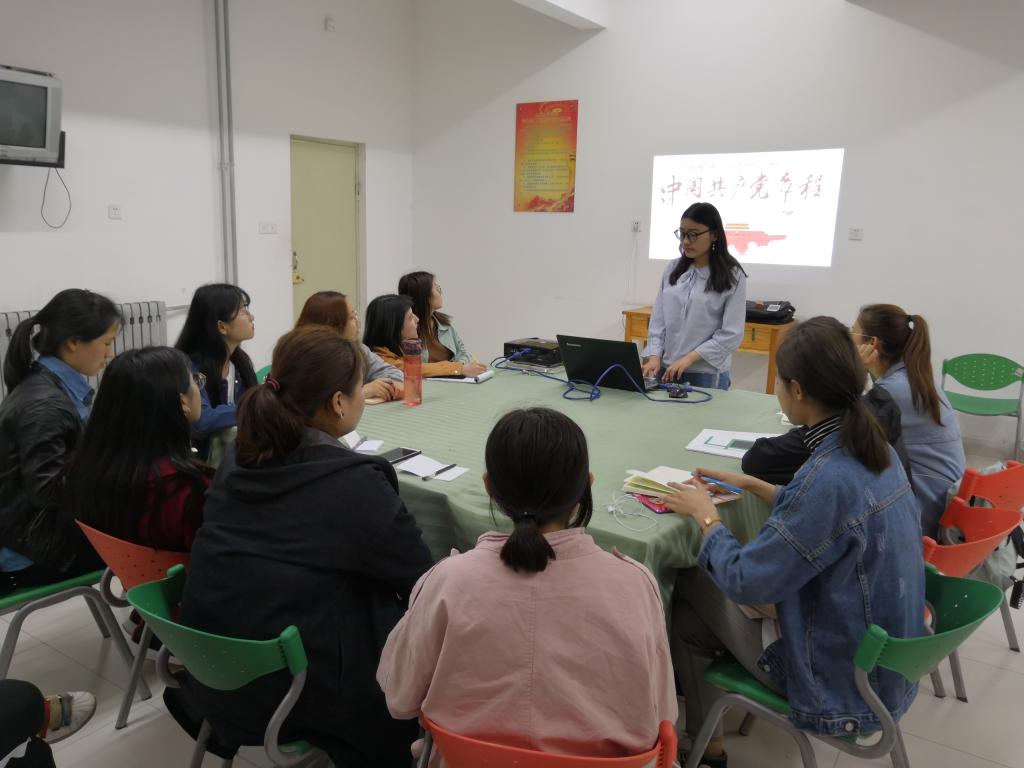为加深入党积极分子对党的的认识,端正入党动机,坚定入党决心,山东女子学院文化传播学院学生党支部于4月23日在党团活动室开展“微党课”之学习《党章》活动。
