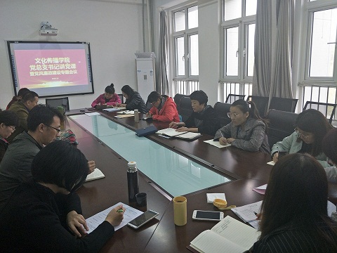 10月25日下午,文化传播学院在博雅楼A303会议室召开“党风廉政建设”专题会议。文化传播学院全体教师、学生党员参加了会议,会议由文化传播学院党总支书记鲁晓平主持主讲。