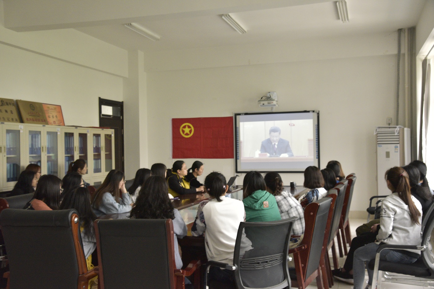 在五四运动100周年到来之际,为更好传承五四运动的精神,肩负起青年人的历史使命,4月30日上午,山东女子学院文化传播学院在博雅楼303会议室组织师生一同观看纪念五四运动100周年大会的直播内容。