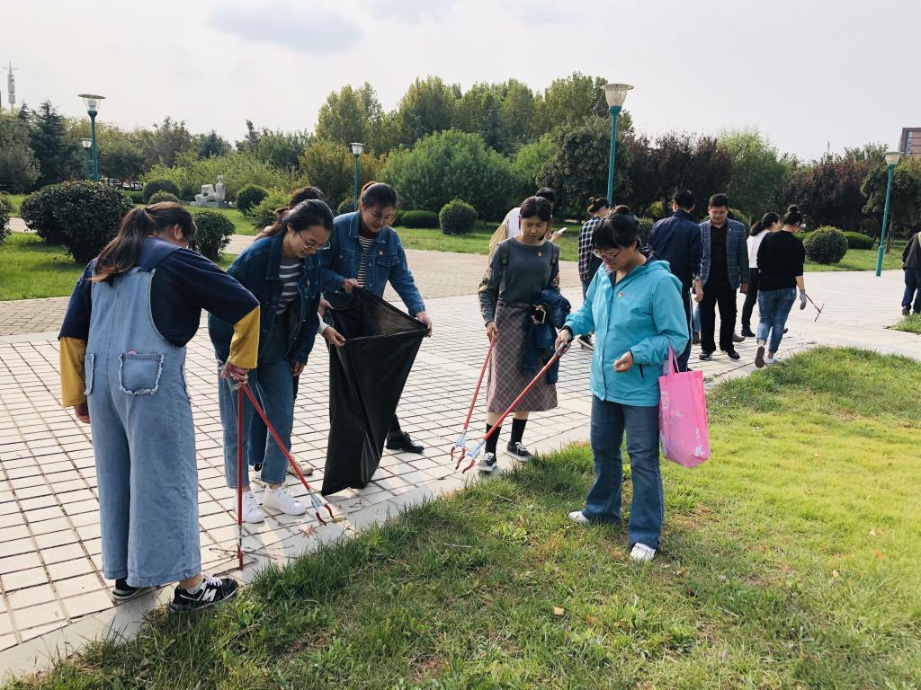 随后,学院全体党员手持清洁工具,来到学院的公共卫生区,把在学院公共卫生区内的草坪、图书馆南北广场等区域内残留的烟头、塑料袋、包装盒等弃置垃圾和卫生死角进行了清洁,并将校园中的枯枝落叶进行统一收集处理,将图书馆北广场的自行车停放区域进行了规整。在劳动过程中,没有人怕累、怕脏,经过一下午的劳动,大家的垃圾袋都装得满满当当,被清理过的校园也更加优美。