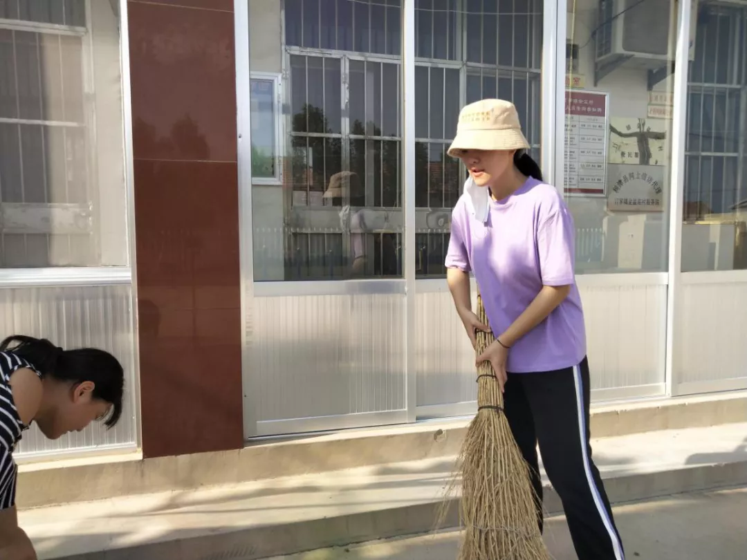在32度的高温下,三下乡志愿者积极发扬奉献精神,不怕苦、不怕累,对村委会大院内杂乱的树枝、垃圾进行了彻底清扫。在活动期间,当地村民热心提供了部分清扫工具。令志愿者意外的是,出现了当地村民的帮助和加入,这让团队成员感受到了浓浓的乡情,拉近了志愿者和社区的距离。看到洁净的环境,志愿者们露出了灿烂的笑容,他们说:“平时在家的时间很少,感觉跟社区联系不紧密。这次活动虽然累点,一看到社区环境干净了,还是止不住的开心,希望能多多参加这样的活动。”